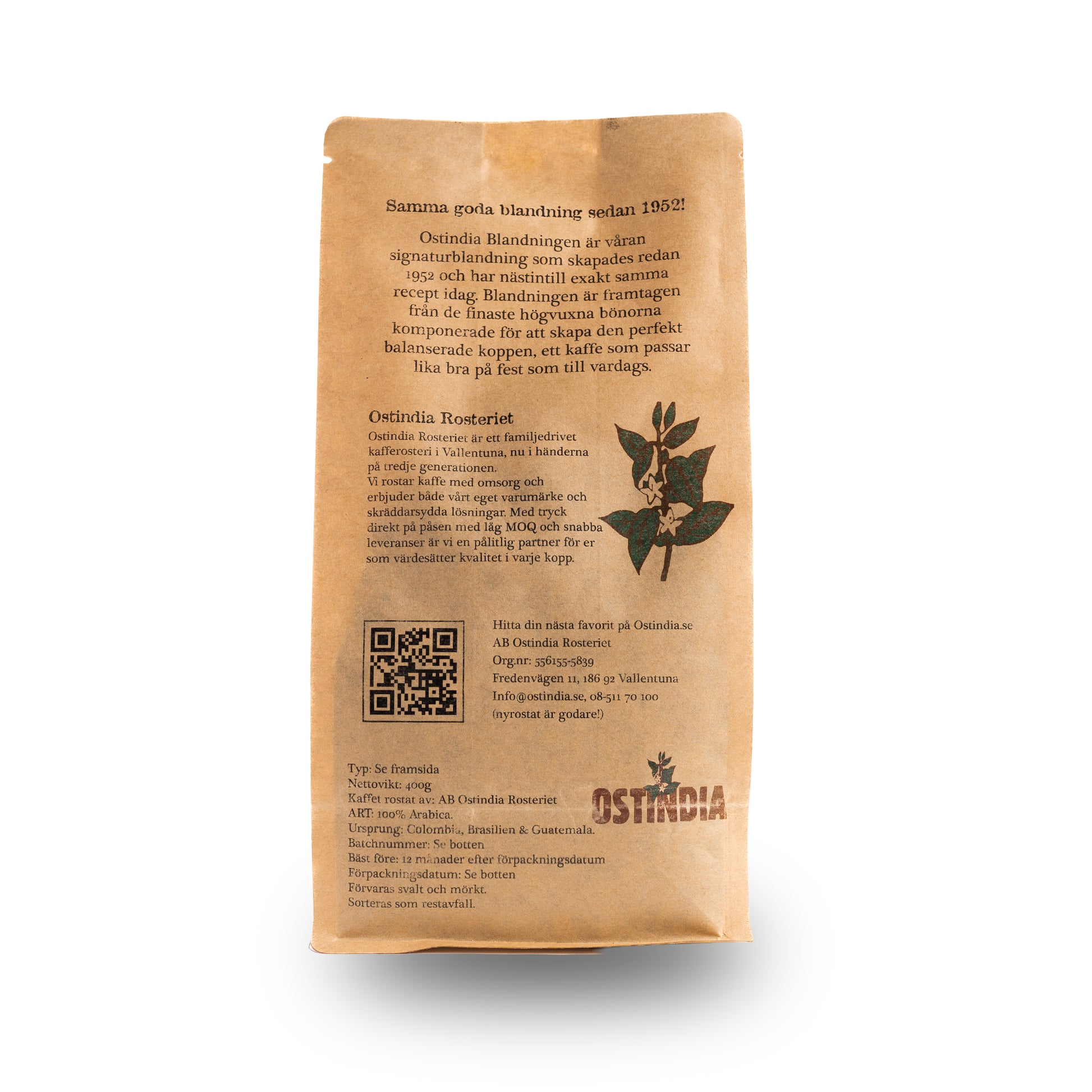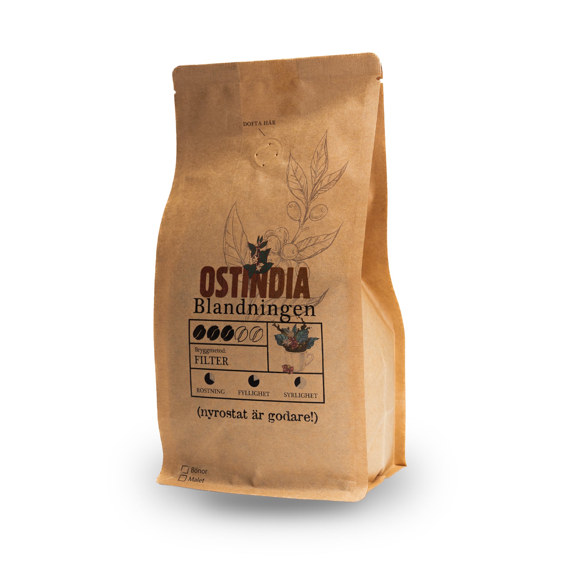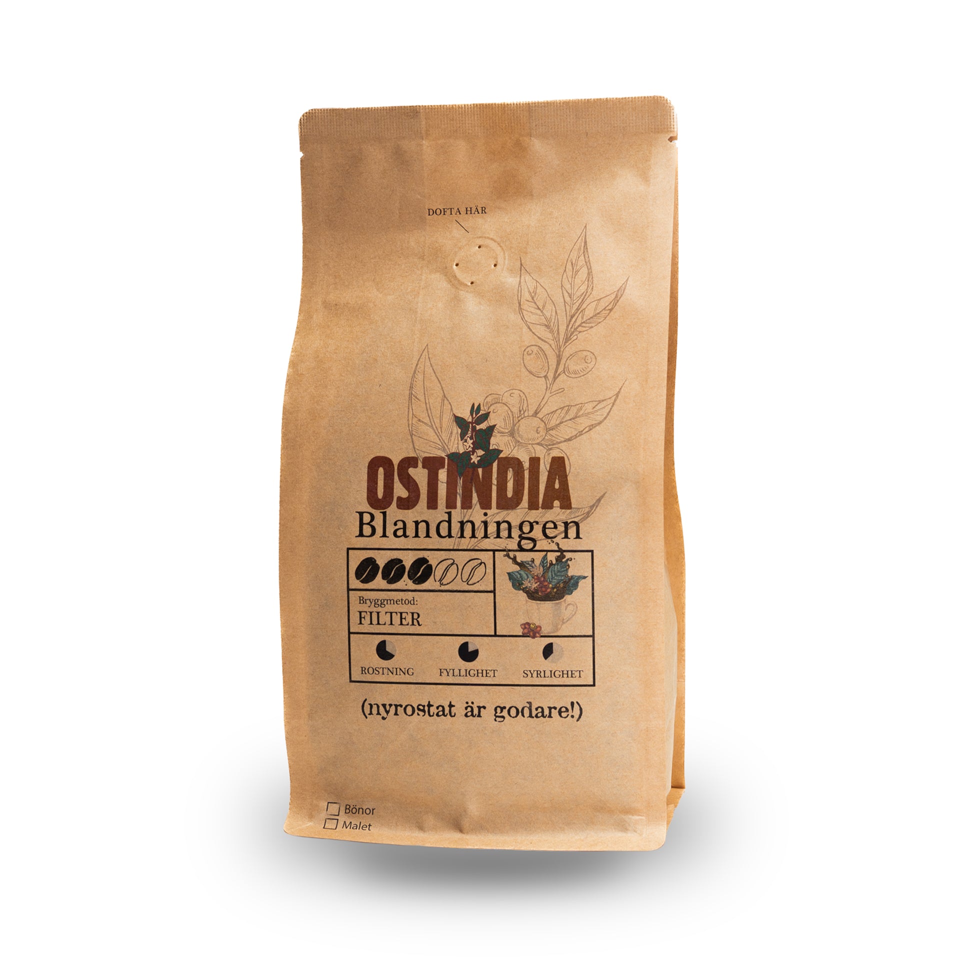 Ostindia blandningen är våran signaturblandning och skapades redan 1952 och har nästintill exakt samma recept idag. Blandningen är framtagen av de finaste högvuxna bönorna som är komponerade för att skapa den perfekta balanserade koppen, ett kaffe som passar lika bra på fest som till vardags.